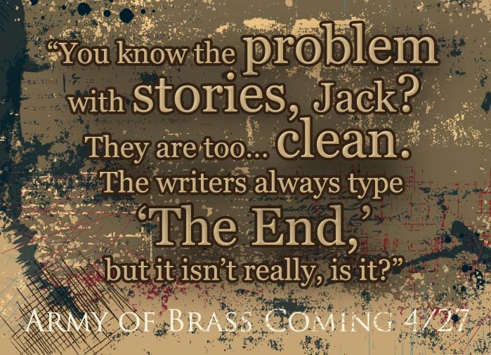 I basically know just enough about graphic design and typography to dabble in meme-making. Spear-heading the Army of Brass blog tour gave me the chance to dust off my Adobe creative suite and make these four images. Do you have a favorite?