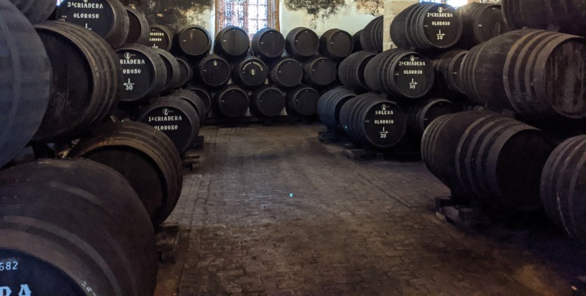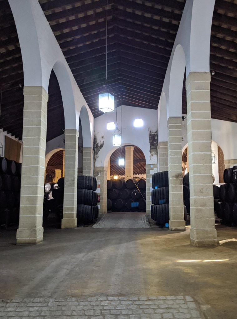 Bodegas earned this nickname because of the high ceilings required in sherry production. It turns out that true sherry can only come from a small area called the “sherry triangle” that has particular environmental conditions that aid evaporation. Sherry is derived from grapes just like a lot of different types of alcohol, but the continuous process of controlled evaporation, mixing the different ages of sherry and the oak barrels, it is a very particular beverage. When you enter this cathedral, the air is thick with the scent of raisins and caramel.