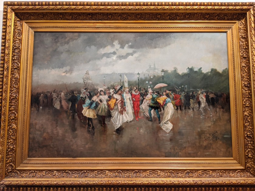 Another favorite was this piece by Eugenio Lucas Villenil (1858-1918). The contrast of the gray day and the joyful color and movement of Carnaval stole my attention right inside the door.